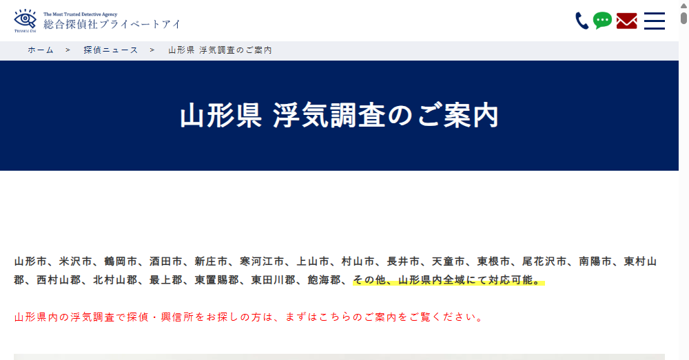 株式会社プライベートアイは山形県を中心に24時間365日無料相談を提供する探偵事務所です。