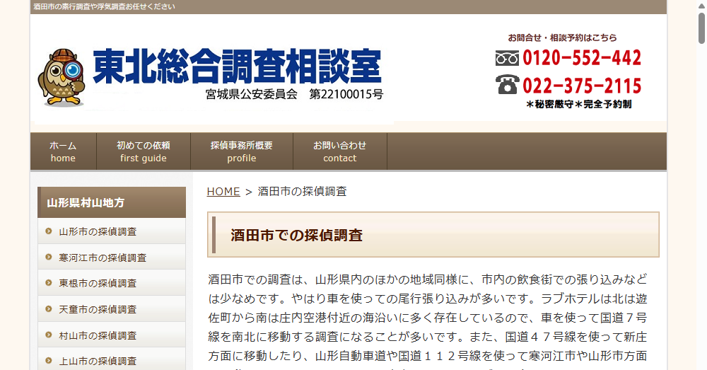 | 公式サイト | https://yamagata.tantei.site/sakata.html |
