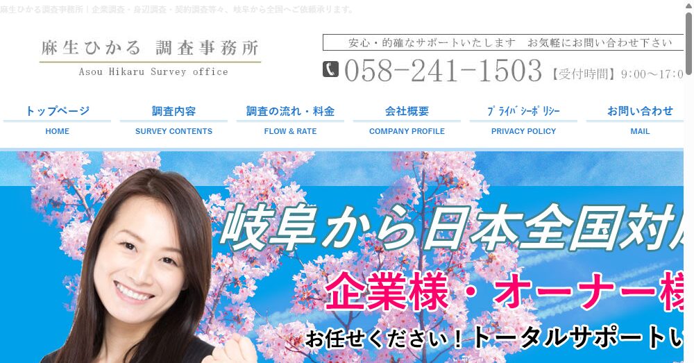 麻生ひかる調査事務所は岐阜を拠点に全国規模で調査サービスを提供しており、特に企業調査や身辺調査を得意としています。