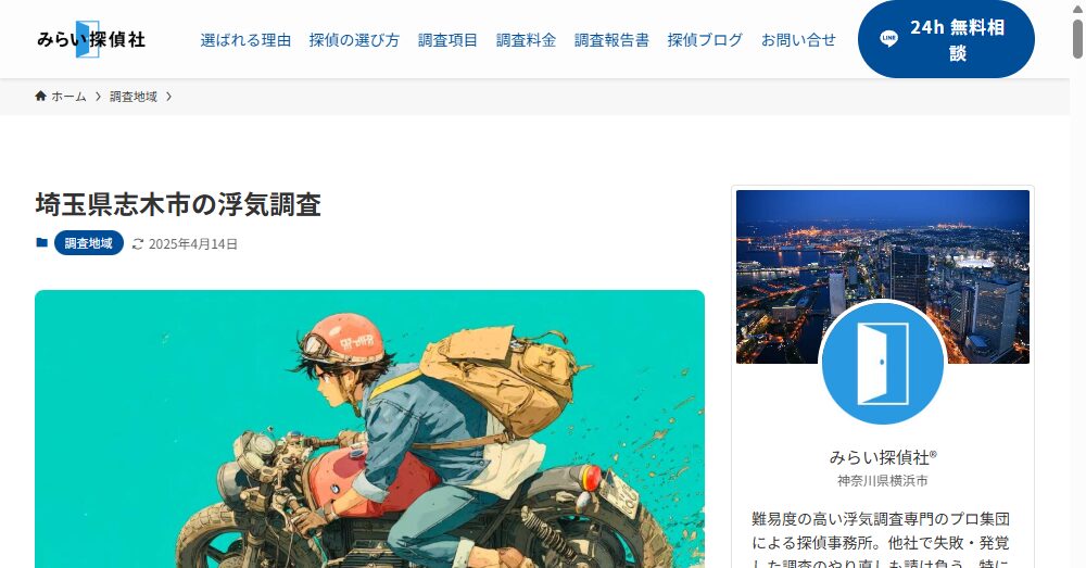 - 埼玉県内に特化した多彩な調査サービスを提供し、浮気や人探し、SNSトラブル調査など幅広いニーズに対応しています。