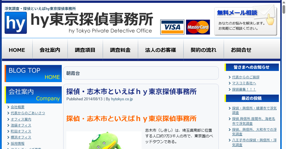 | 調査項目 | 浮気調査、行方調査、人探し、虐待いじめ調査 など |