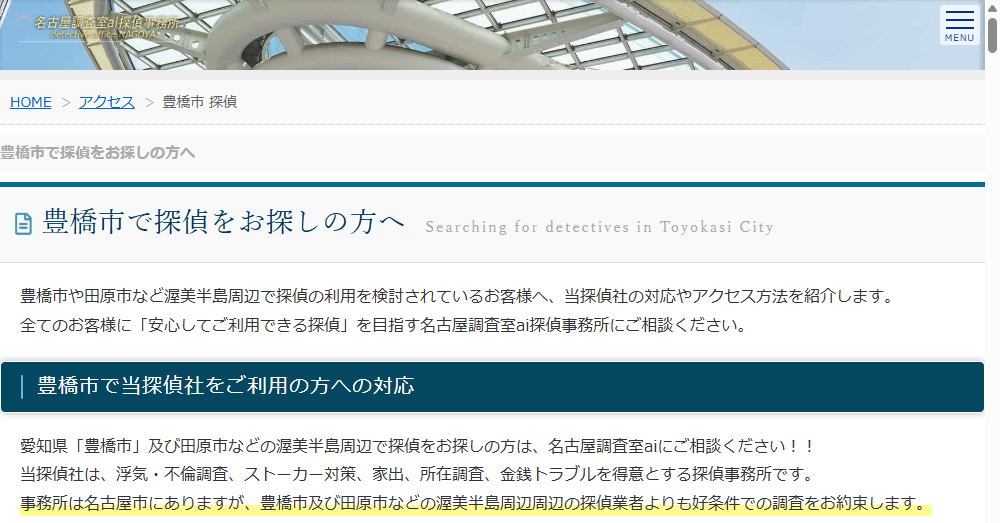 名古屋調査室ai探偵事務所は愛知県豊橋市を拠点に、幅広い調査サービスを提供する専門的な探偵社です。