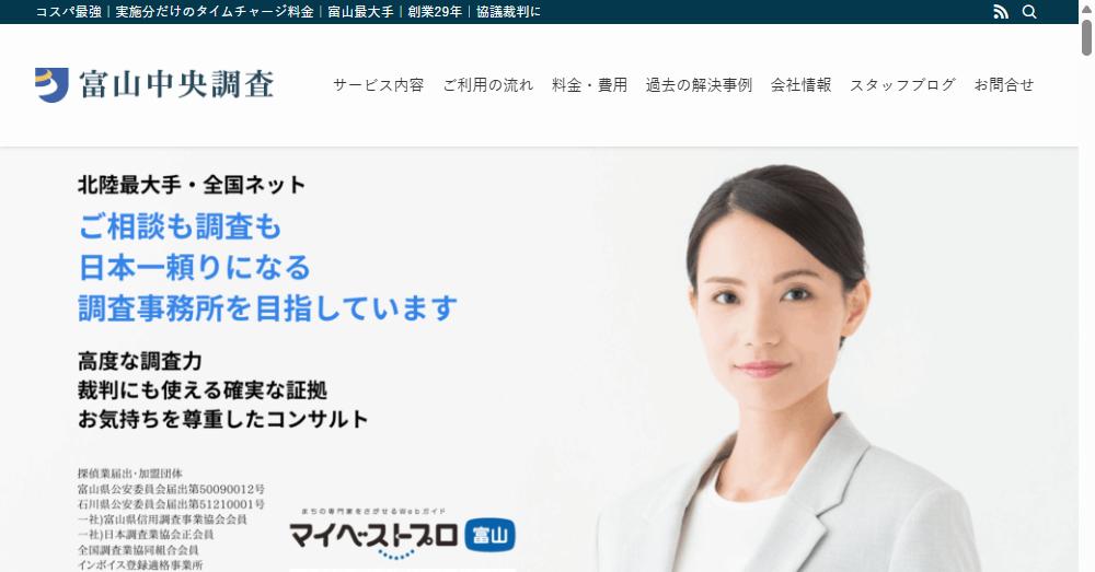 特に富山県では浮気相談件数の多さが背景となり、多彩な調査業務を展開しています。