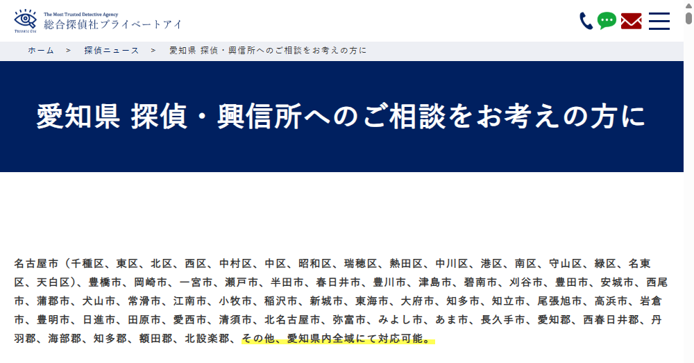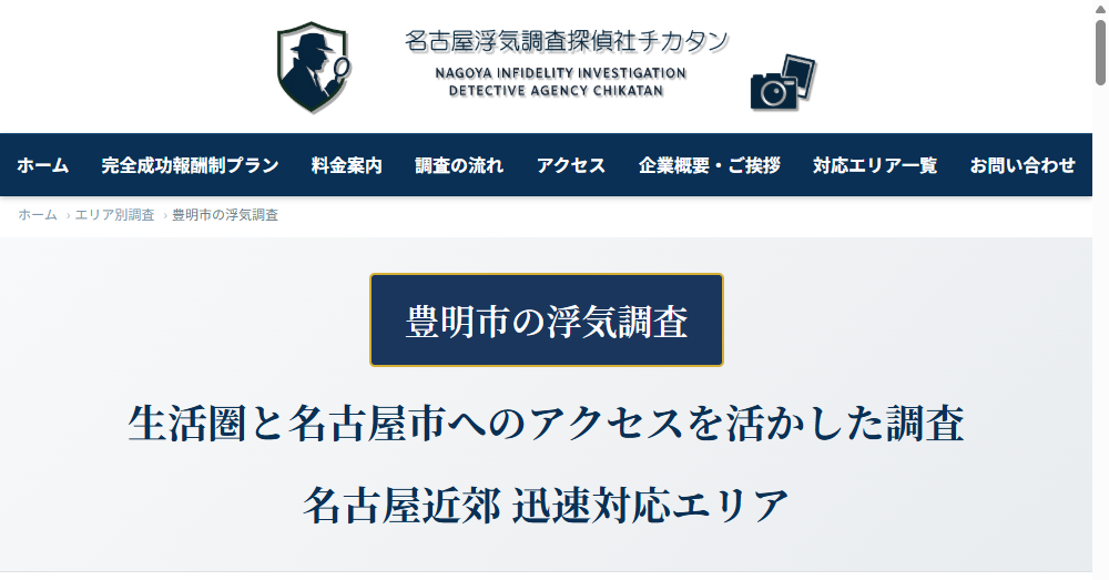 • 年中無休で8:00~24:00まで営業し、大府市や豊明市においても多数の調査実績あり。地域密着型で地域の問題解決に貢献しています。