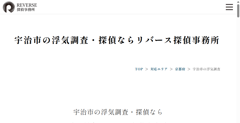 リバース株式会社は宇治市を中心に質の高い浮気調査を提供する探偵事務所です。
