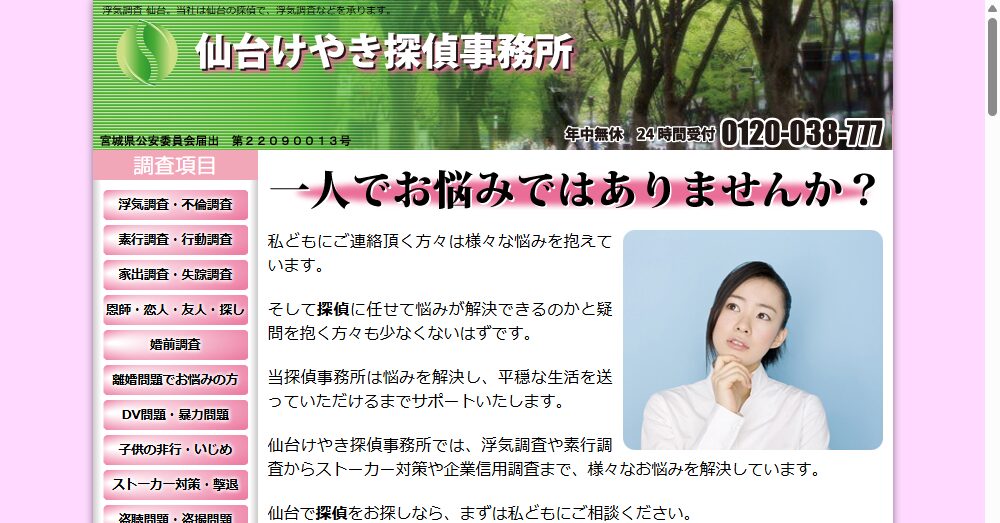 | 公式サイト | https://tantei-soudan.co.jp/sendai-wakabayashi/ |