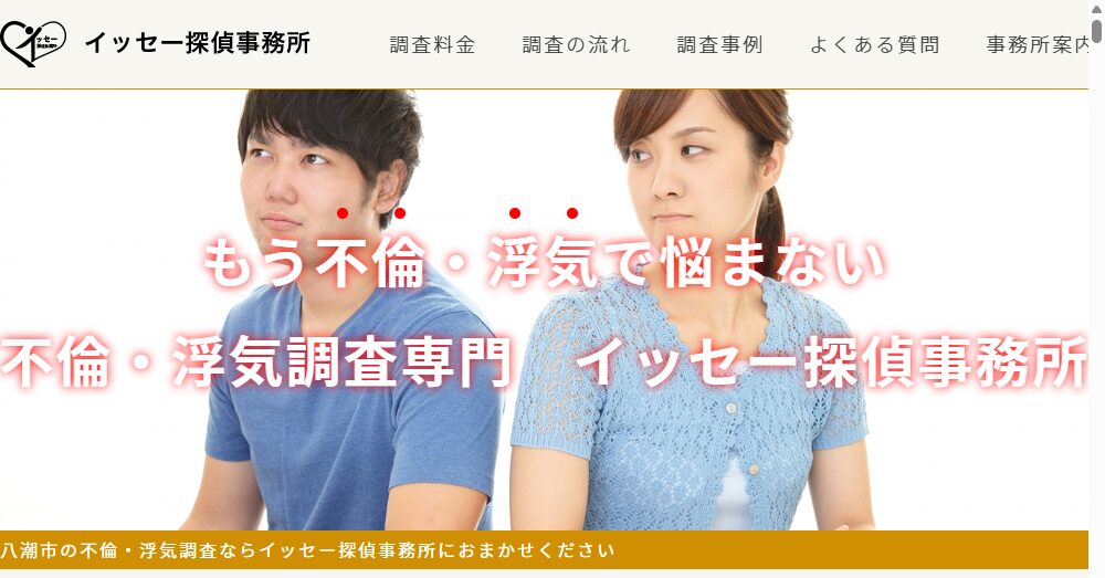- 不倫・浮気調査専門のイッセー探偵事務所は、無料相談を通じて最適な調査プランを提案し、安心して依頼いただけます。